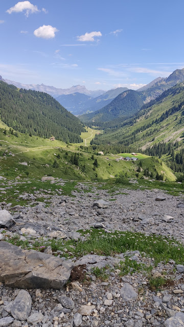 Cesta je namáhavější, hlavně jeden stoupáček. Ale výhledy jsou tu nádherné. Kromě Mont Blancu zatím asi nejhezčí 👏. Dokonce se šlo i mělkým potůčkem!!! Jen to klesání tu je občas dost drsný... 🙀 Můj puchýř na malíčku (o tom jsem se zatím ani nezmínila, ale doprovází mě od prvního dne... - to je tak, když si někdo na trek vezme nové boty... 🙈) a kolena často trpí. 🙄